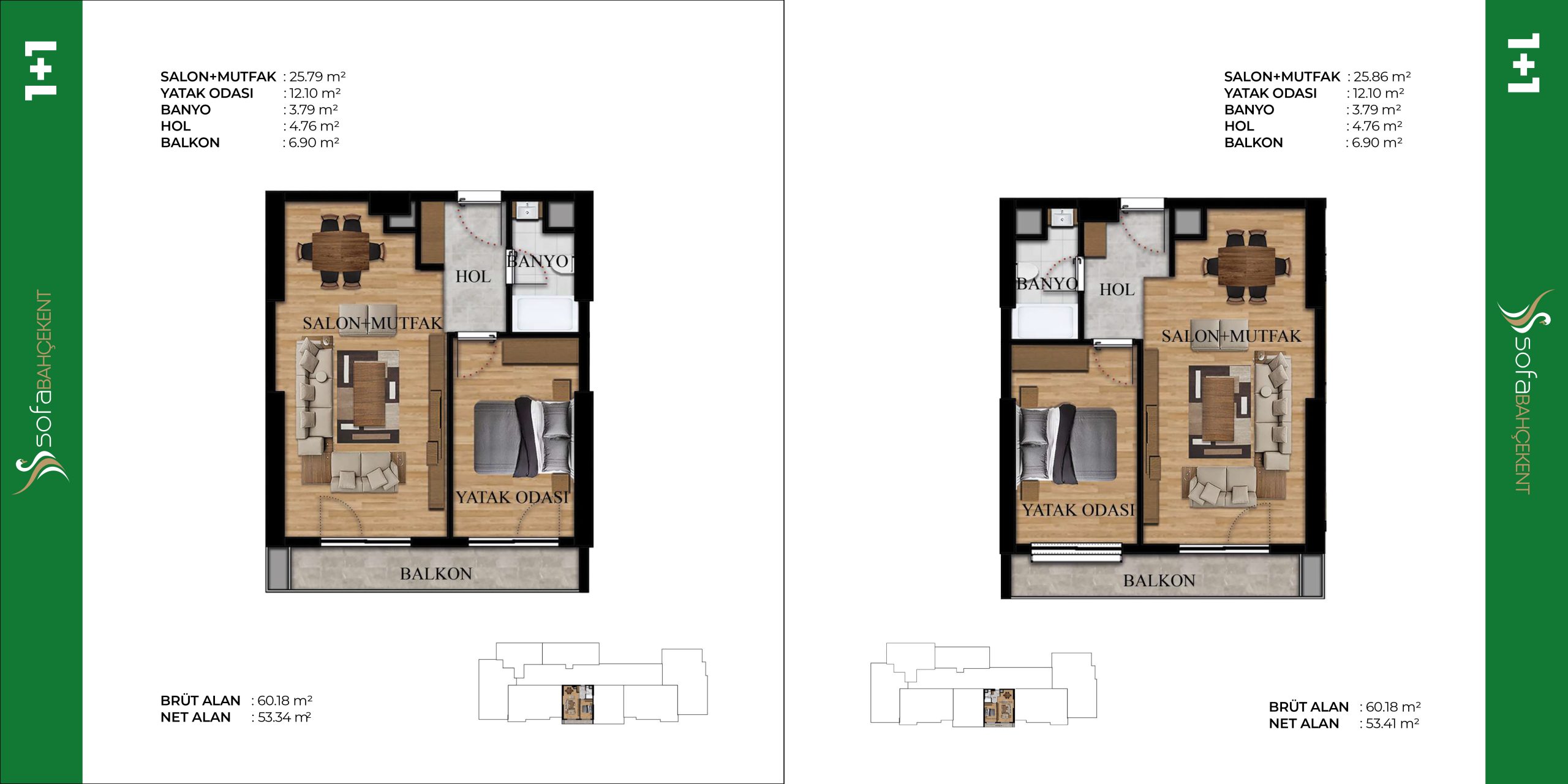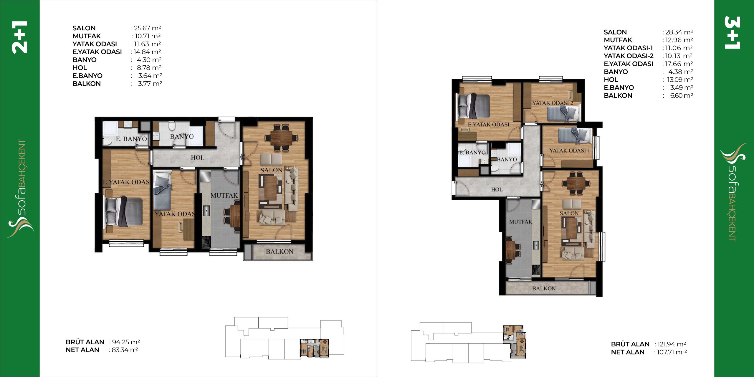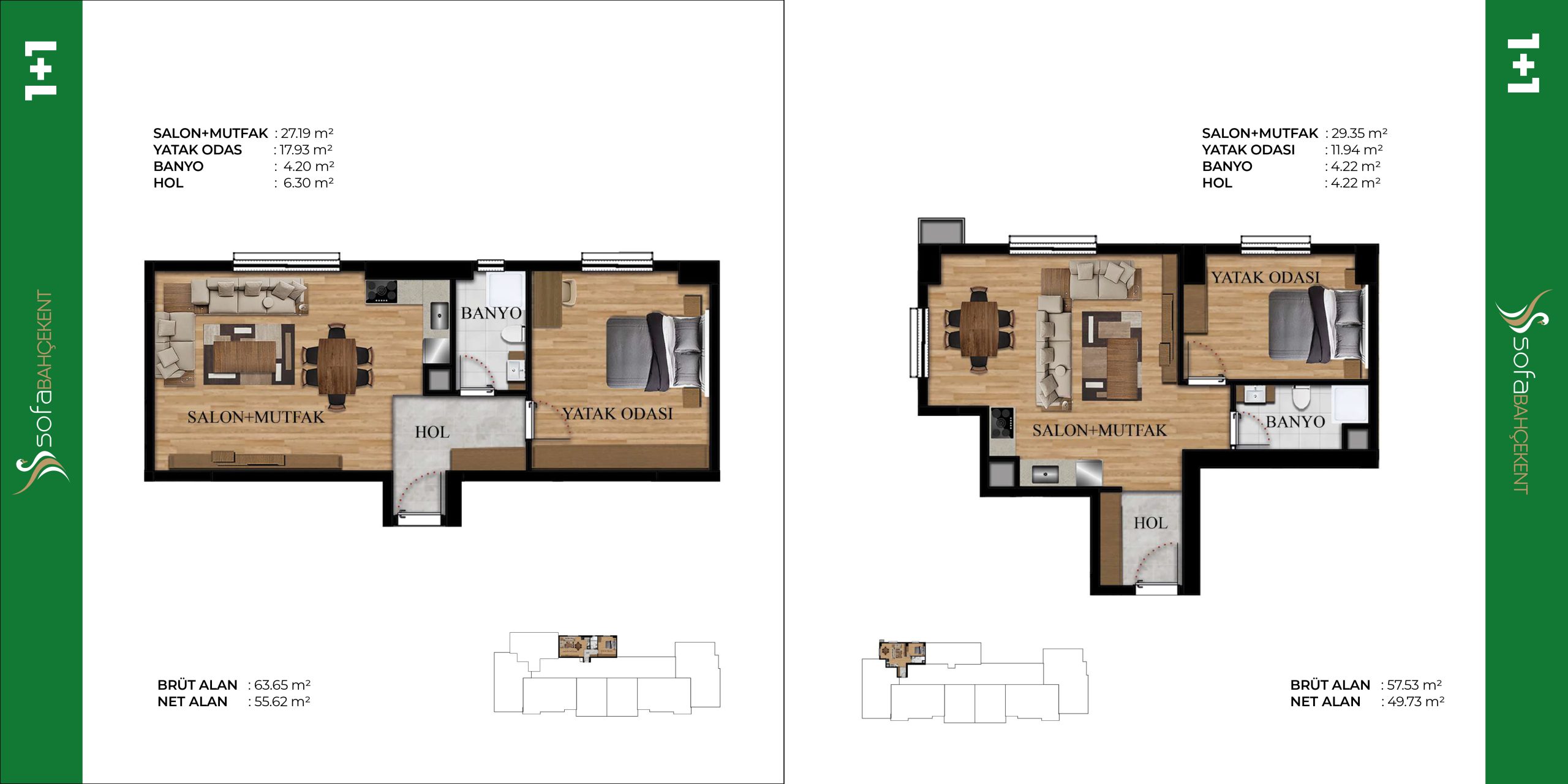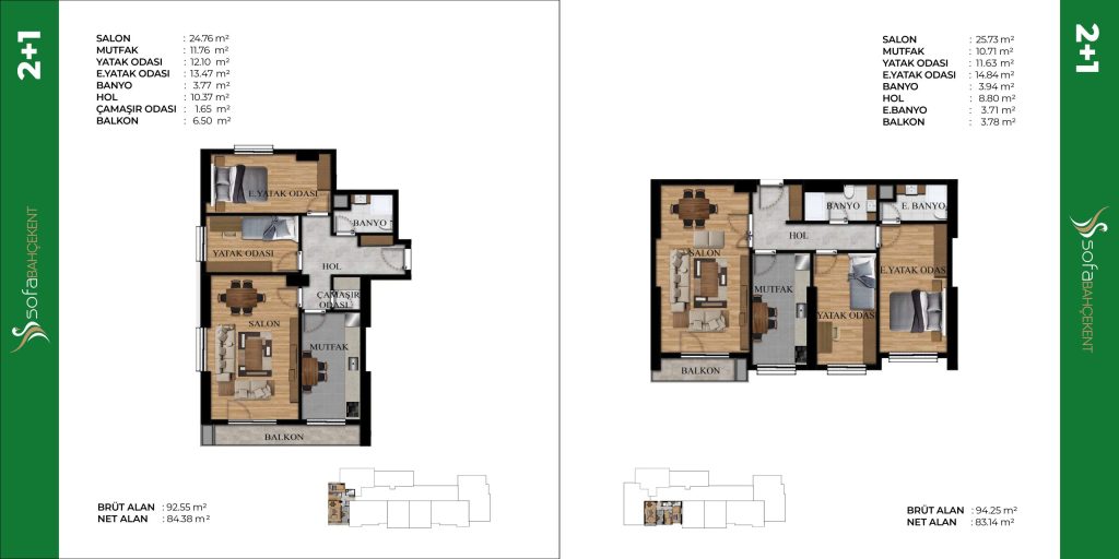 ihtiyaçlar düşünülerek tasarlanmış 1+1, 2+1 ve 3+1 seçenekleri
